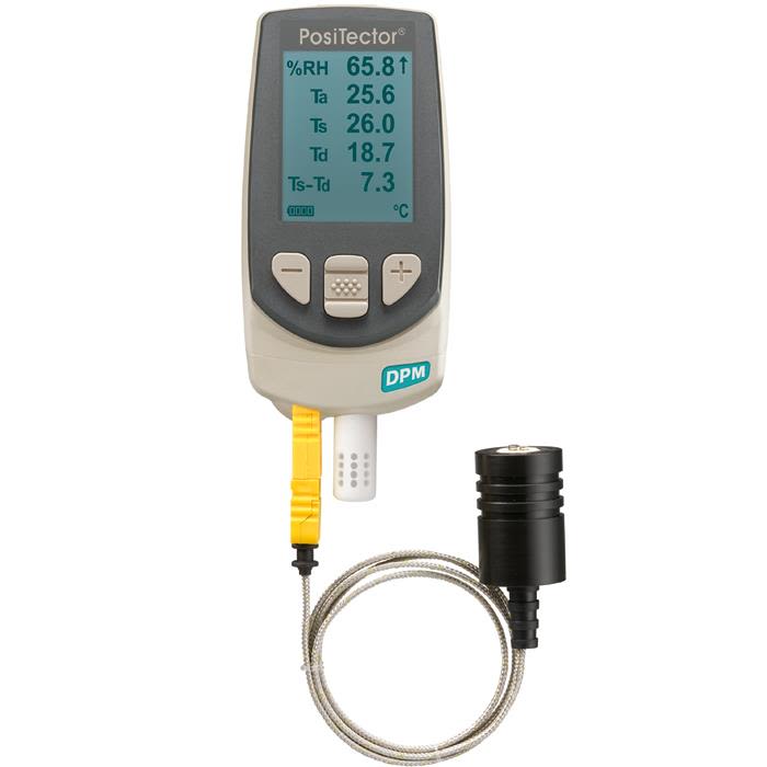 DeFelsko PosiTector DPM används för att mäta relativ fuktighet, lufttemperatur, yttemperatur, daggpunktstemperatur och skillnaden mellan yta och daggpunktstemperatur.